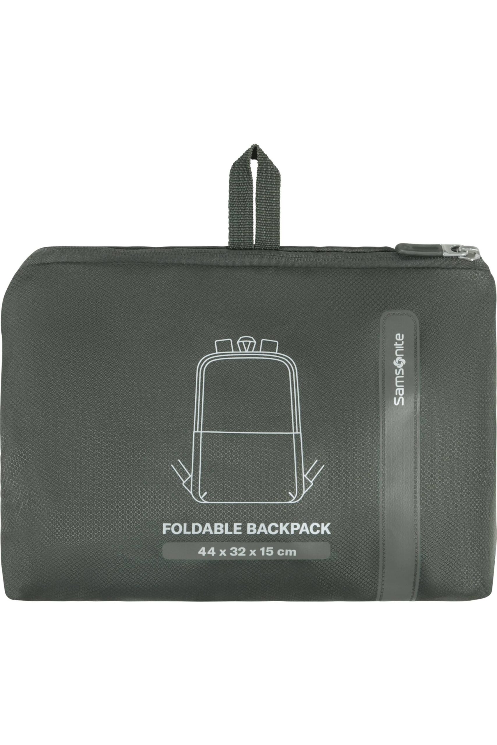 Mochila ligera que se pliega en su propia bolsa. La mochila cuenta con un bolsillo con cremallera, smart sleeve y detalles reflectantes.