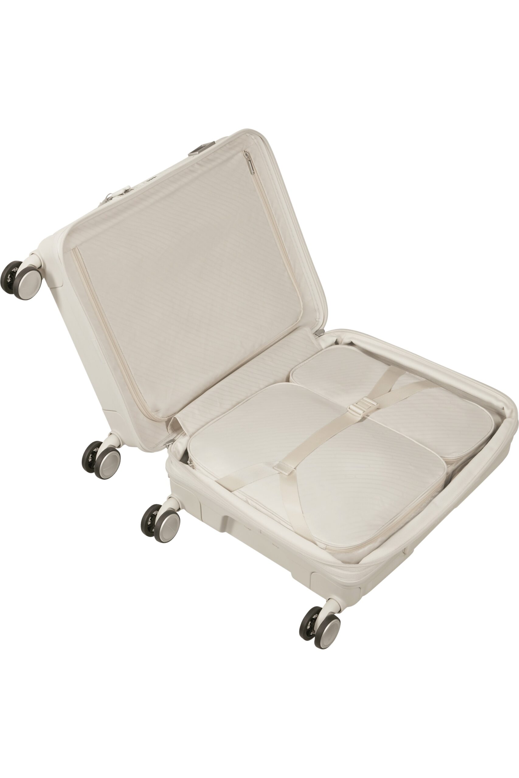 Presentamos la colección Paralux: una auténtica obra maestra en el arte de la organización, elaborada con materiales sostenibles. Las maletas rígidas cuentan con una abertura central tradicional y una innovadora puerta frontal que facilita el acceso a tus pertenencias, además de los cubos de embalaje incluidos. Los bolsos y las bolsas de viaje están equipados con detalles sofisticados y bolsillos para que puedas personalizar tu organización para cada viaje. El equipaje, perfeccionado.