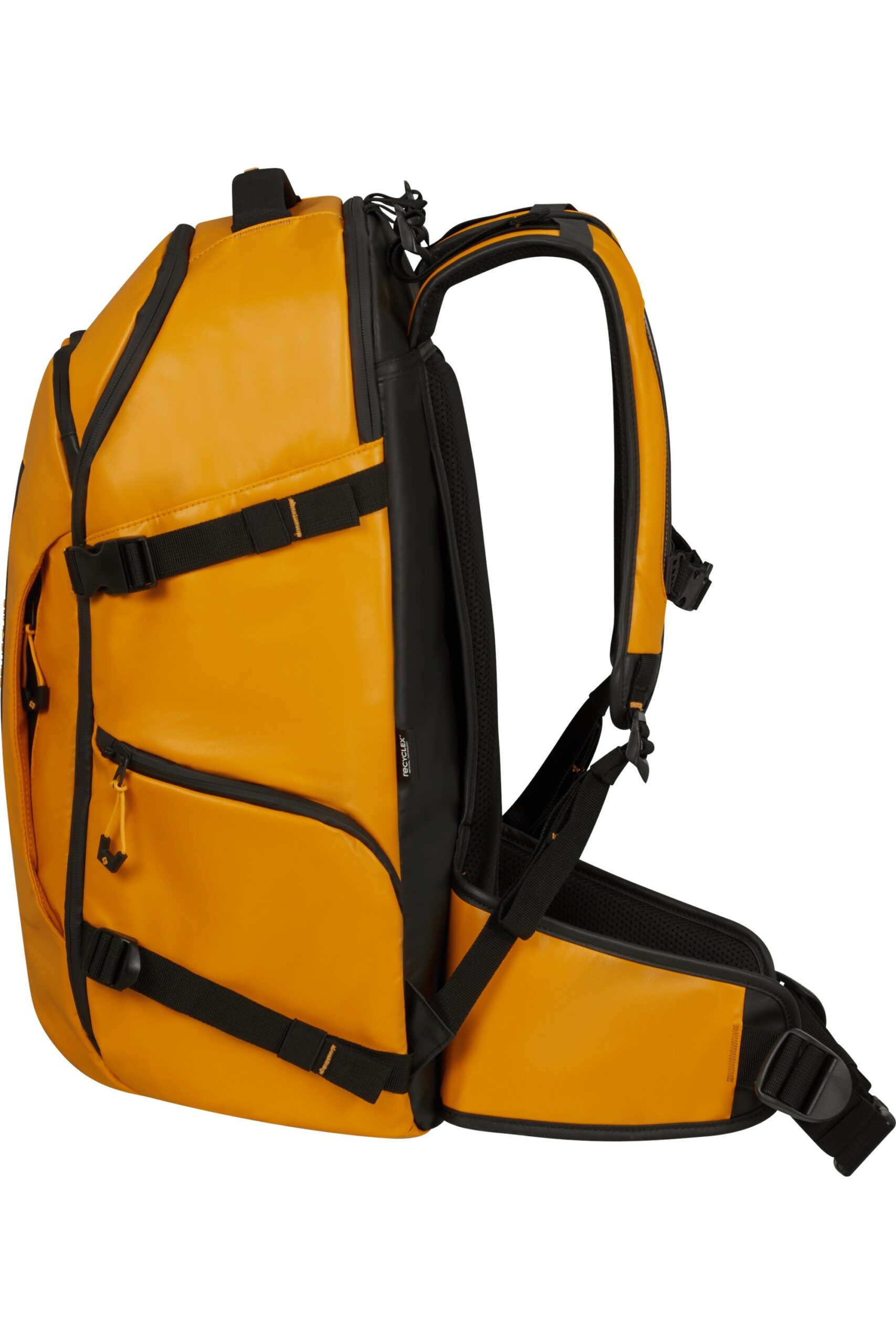 – Tejido exterior: fabricado con 100% nailon reciclado postindustrial y PET reciclado postconsumo.